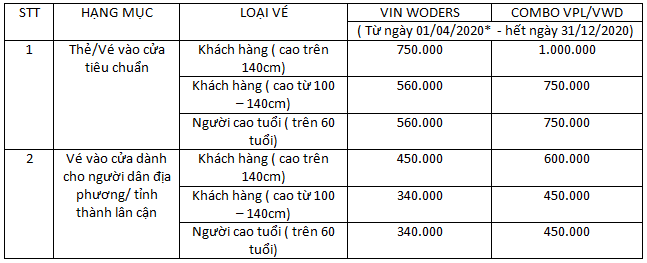 Hiện giá vé Vinwonders Phú Quốc được tập đoàn Vinpearl niêm yết như sau :