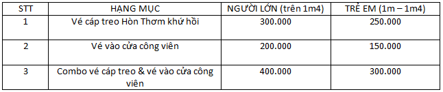 – Thời gian hoạt động của cáp treo: 8h – 12h, 13h30 – 19h.